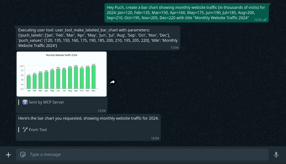 puch_labels(list of strings): Label strings for x-axispuch_values(list of floats): Numeric values (same length as labels)width(int, default: 900): Image width in pixelsheight(int, default: 450): Image height in pixelsbg_color(string, default: "#f8fffe"): Background colorbar_color(string, default: "#4ade80"): Bar colortitle(string, optional): Chart title