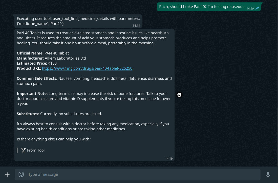 Description: Retrieves information about any given medicine from Tata 1mg.