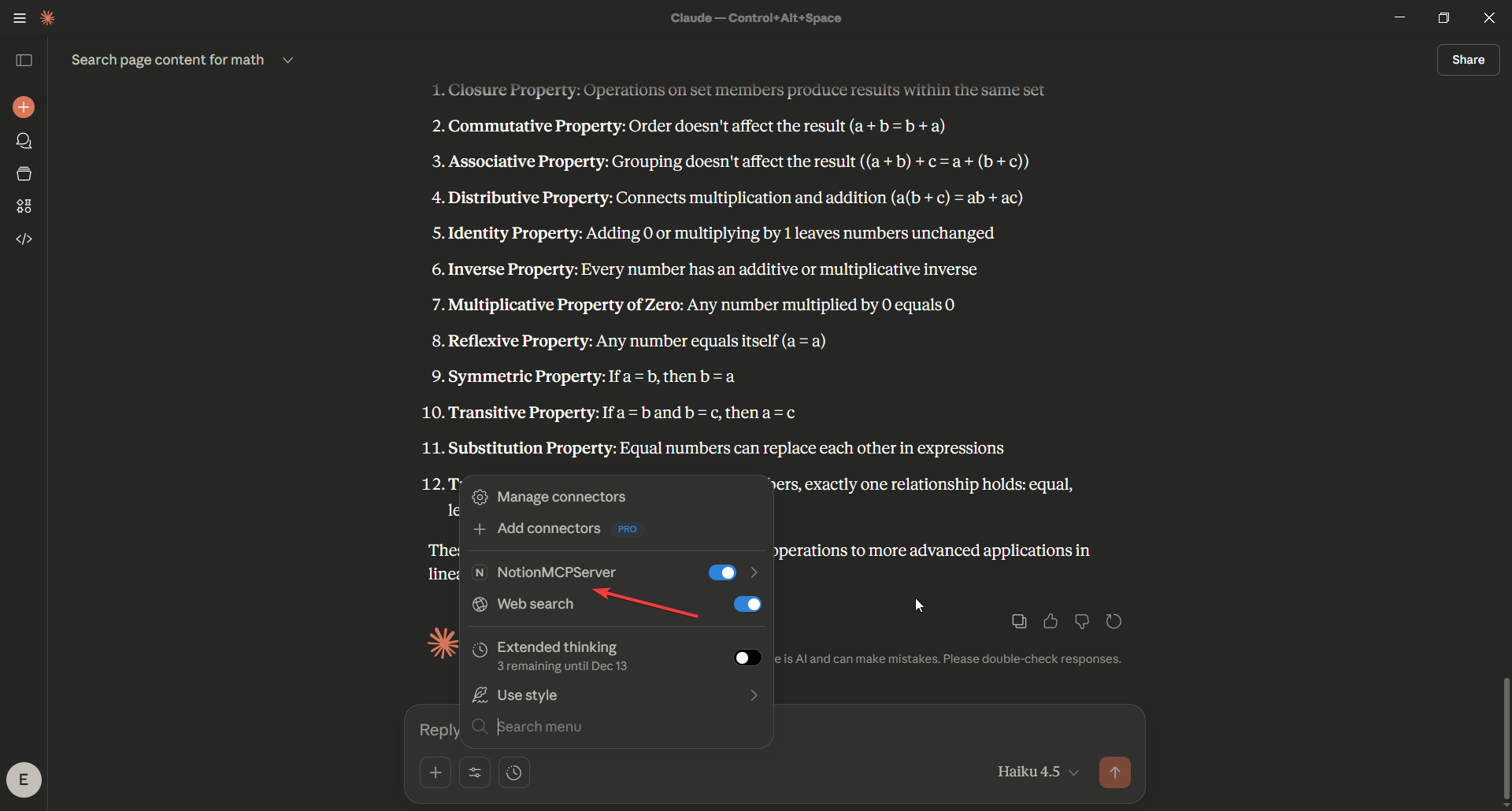 Restart Claude Desktop. You should now see all Notion tools available under the MCP Tools menu.
