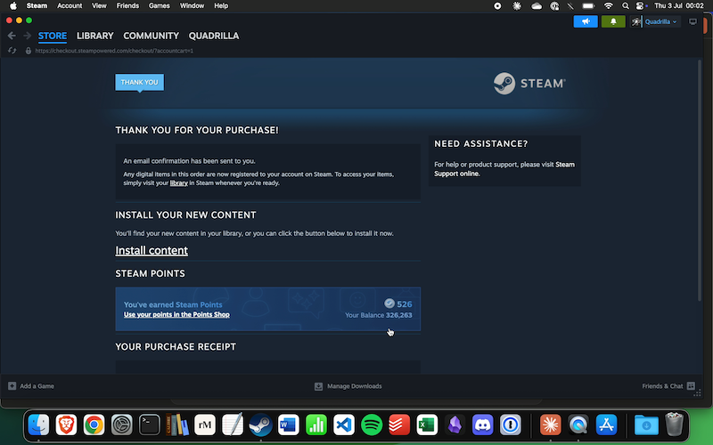 - You earned 526 Steam Points from this purchase