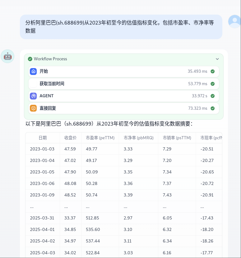 分析阿里巴巴(sh.688699)从2023年初至今的估值指标变化,包括市盈率、市净率等数据