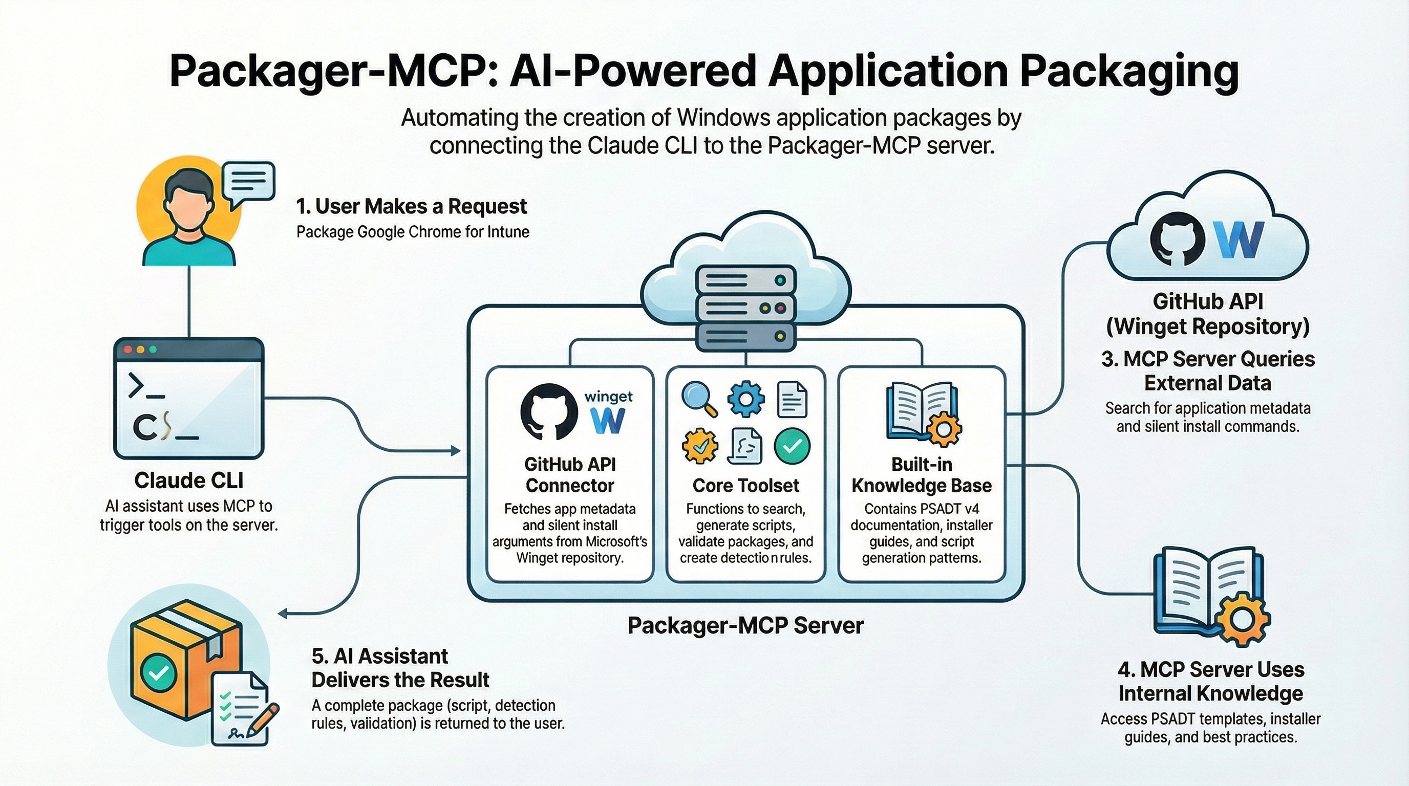 This server gives your AI assistant (like Claude) superpowers for creating Windows application packages. Instead of manually researching silent install arguments, writing PSADT scripts from scratch, and figuring out Intune detection rules, you can just ask your AI to do it for you.